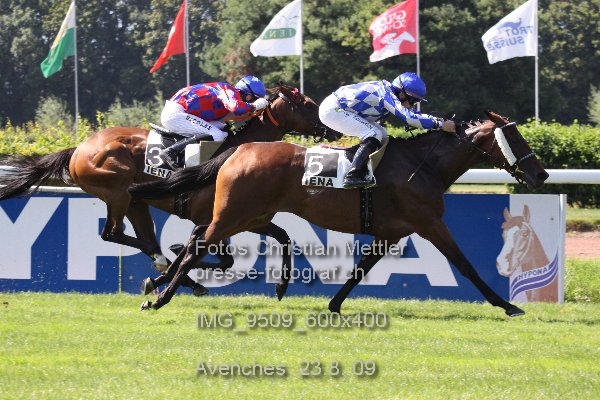 | 23.08.2009 | Avenches | Flach | 2400m | 7.Prix des Termes | N.Guilbert | 2 | Resultat | Bilder | |